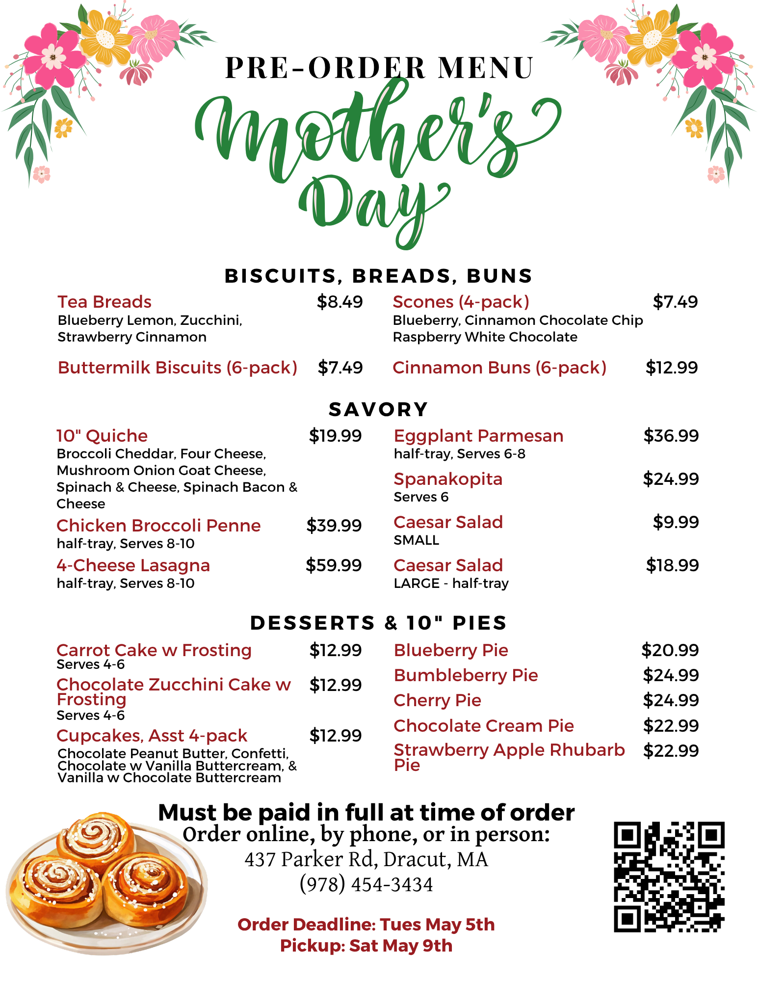 Looking for Mother’s Day dinner near you or a local bakery for Mother’s Day treats? Our farm kitchen prepares every dish from scratch in our Dracut kitchen using the best seasonal, locally grown ingredients. From sweet baked goods to hearty prepared meals, we make it simple to celebrate Mom with something special.